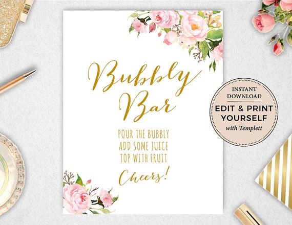 Bubbly Bar Sign Bridal Shower Champagne Bar Bubbly Bar Etsy Ireland